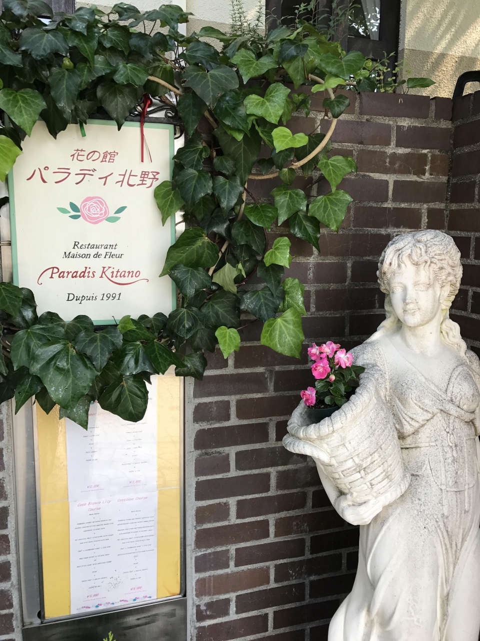 北野異人館エリアの石畳の小径沿いにある一軒のレストラン。門から花がとにかくたくさん飾られていました。お庭も洋式のガーデンという感じで緑豊か。そして室内にもたくさんの花が飾られていました。この雰囲気で味わうフレンチはもちろん美味しかったです。