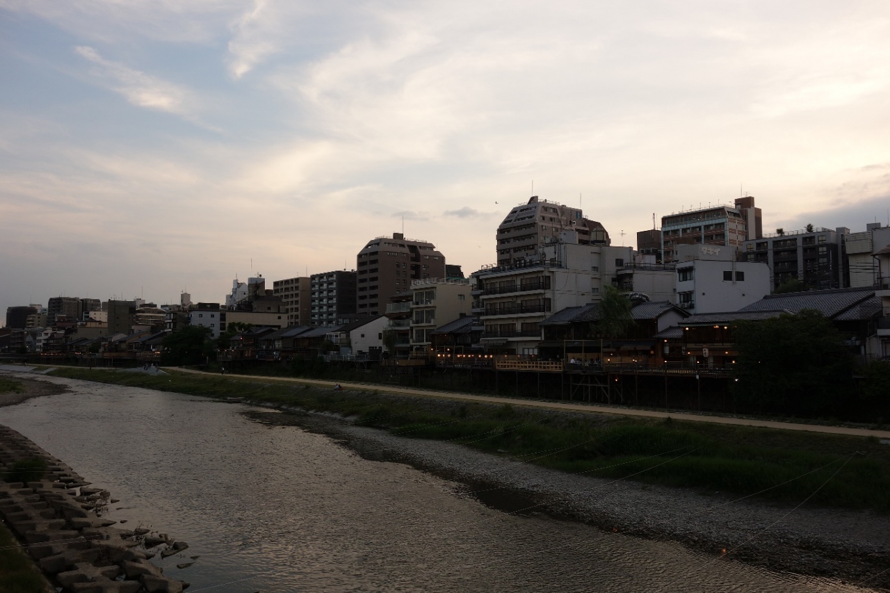 京都に滞在時は各観光地をまわるのに何度か鴨川を渡りました。時間帯によって風景が変わるので訪れる度に面白いなと思って楽しんでいましたが、特に夕方から夜にかけての鴨川の風景は最も京都らしい風情を持っていると感じました。
