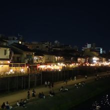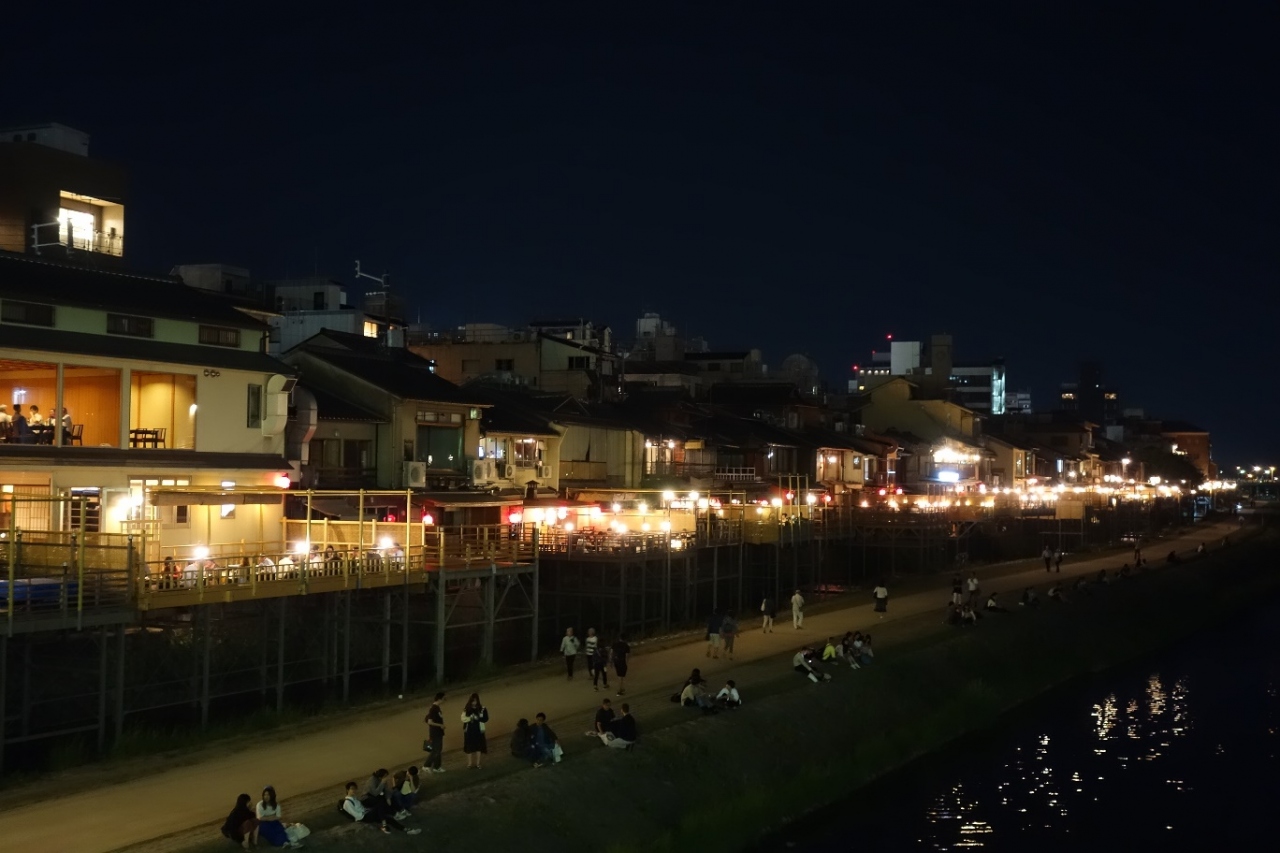 京都に滞在中、友人たちと待ち合わせて何度か食事をしました。その際に最も京都らしい雰囲気を味わいたいとリクエストしたところ鴨川沿いのお料理屋さんに連れて行ってくれました。外に張り出した屋外の席で納涼と食事を一度に楽しめてテンション上がりました。