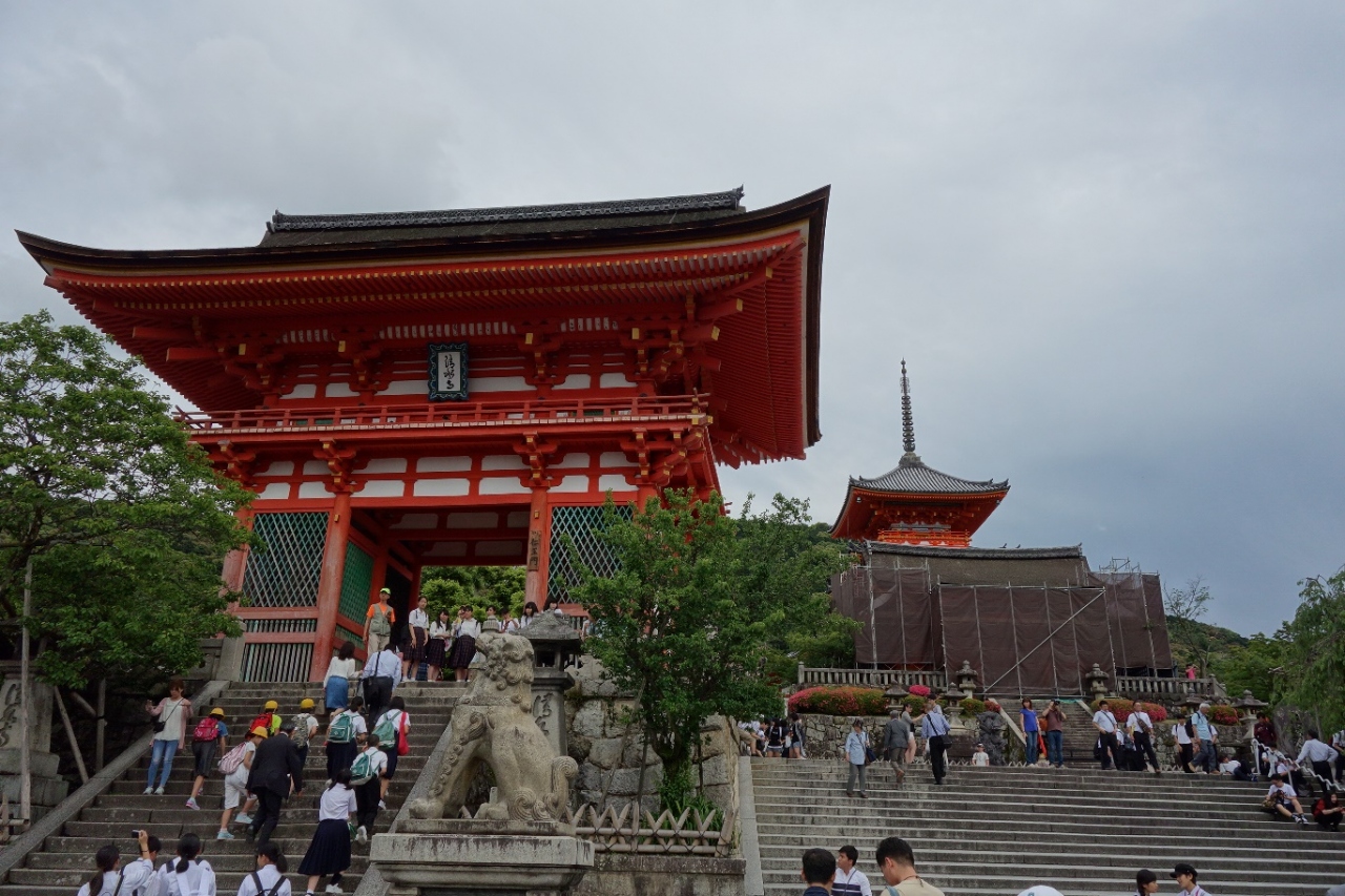京都の清水寺は流石に人気の観光地だけあって、夕方に出かけましたがまだまだ多くの人達で賑わっていました。市の中心部からバスで行ったのでバスを降りてしばらく歩きましたが、お寺に着いて先ずこの仁王門の朱色が目に飛び込んできました。大きくは有りませんでしたが印象的な門でした。