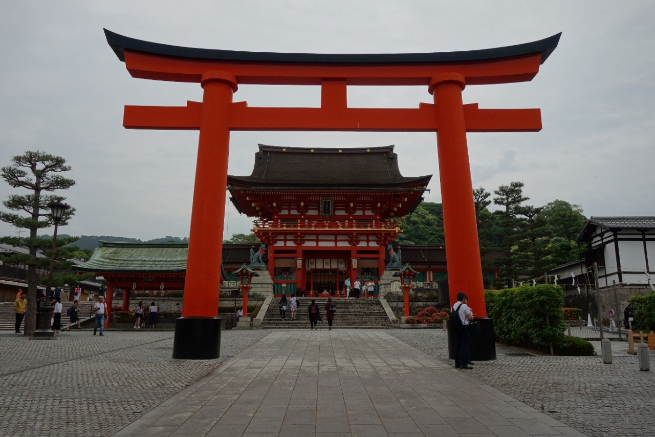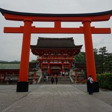 JRの駅から先ず大鳥居を抜けて、この楼門へ向かいます。とても美しくデザインされた立派な門で朱塗りの鮮やかな色彩と共に、その造り込まれた形がとても印象的でした。こちらを抜けてから本殿や千本鳥居の方へ向かいます。