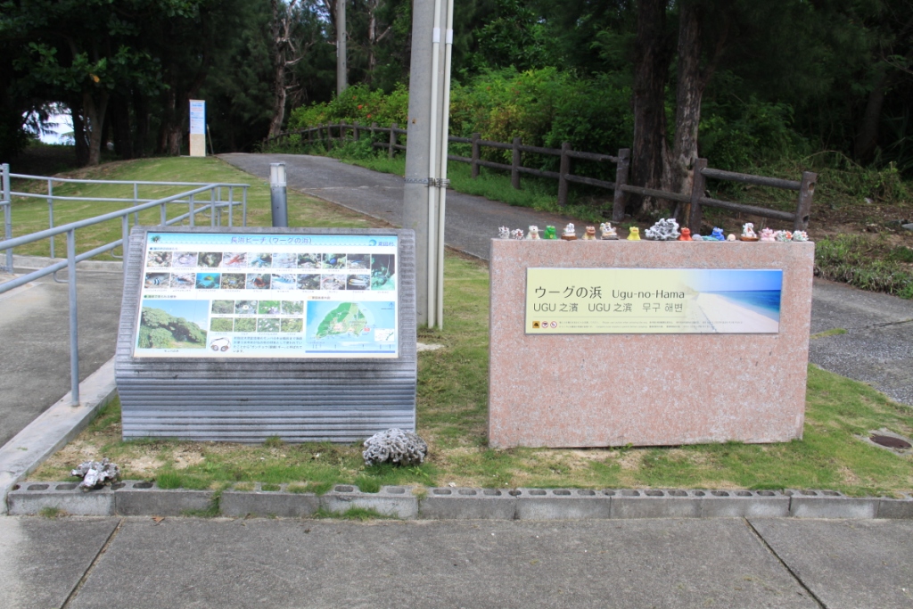 島の東部にある長さ700mくらいの海岸で、波打ち際が砂浜、その先に元々は珊瑚礁であったと思われる岩礁が続いている。