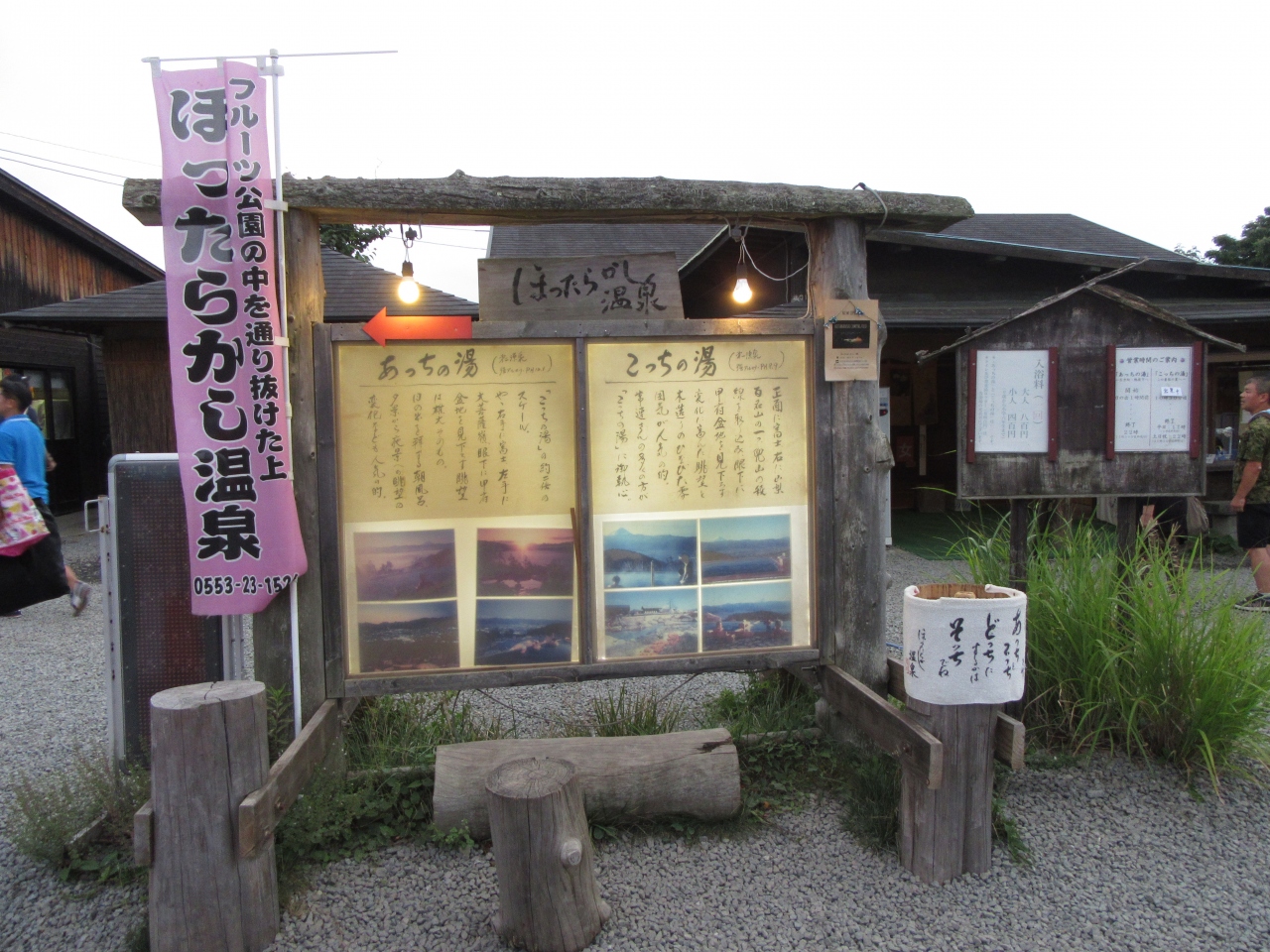 ほったらかし温泉は、山の上から甲府盆地を見下ろす絶景が人気の日帰り施設です。「あっちの湯」と「こっちの湯」の二つあり、どちらも同じ値段で入れます。規模が大きく眺望もいい「あっち」は混んでいたので「こっち」に入りました。それでも夕暮れ時、茜色に染まる山々と点々と灯りがともる街の景色を堪能できました。施設は綺麗でなく泉質も特徴ありませんが、絶景が人気の日帰り温泉です。