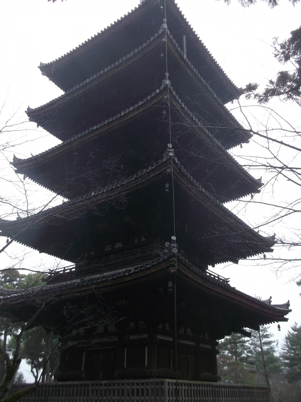広い仁和寺の中で高くそびえ、ひときわ目立つ五重塔。比較的近くまでいくことができ、上を見上げるとその高さが良くわかります。塔の姿は一層から五層まで屋根の大きさがほぼ同じなので、均整がとれていて美しく見えました。