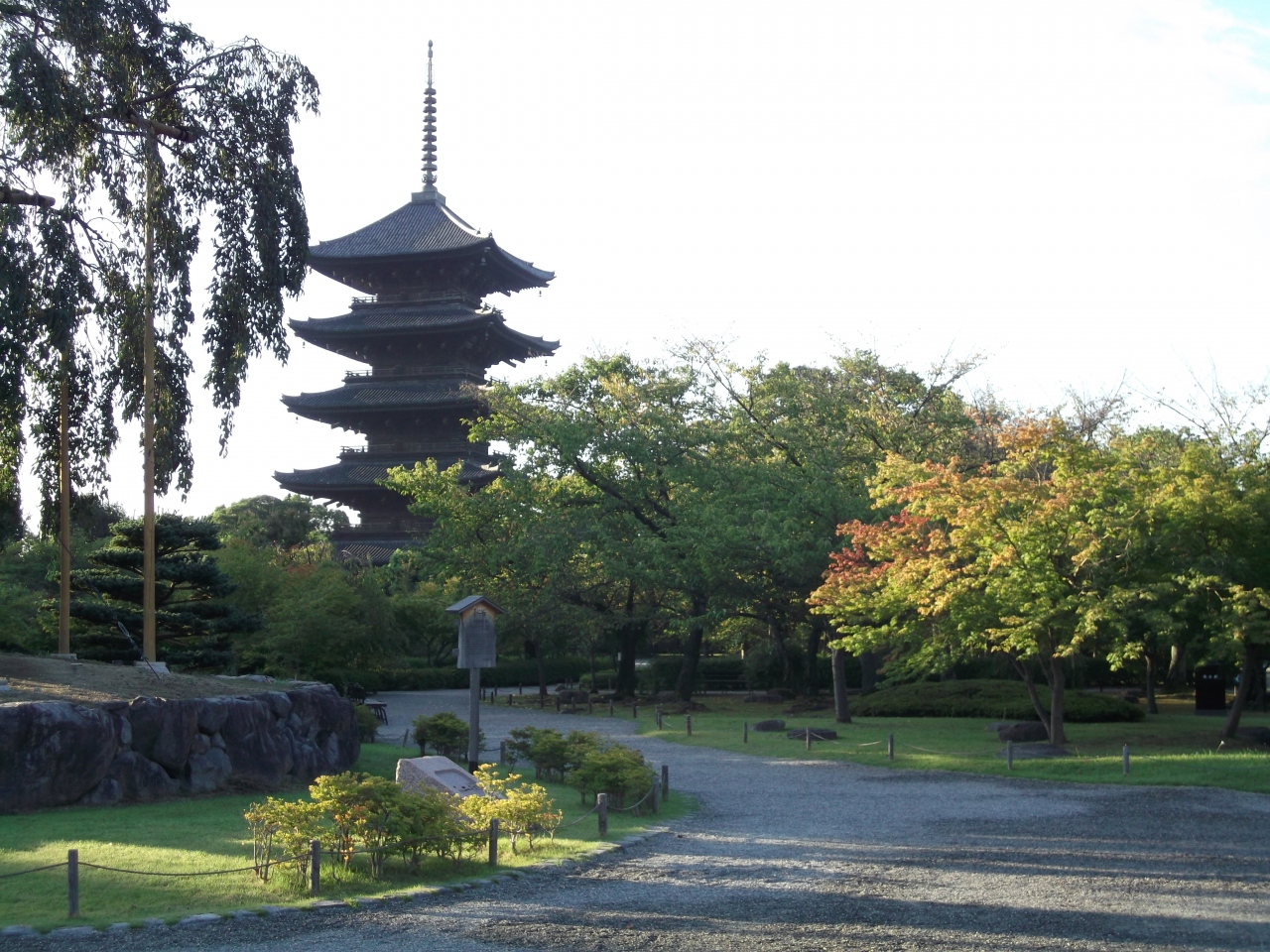 東寺の五重塔は新幹線からも見えて、いつもこれが目に入ると京都に来たと実感します。最も高さのある五重塔だけに、東寺の周りのどの方角から見ても目立ちますね。何回も火災で消失したのに再建され、現在の塔は江戸時代の初めに建てられて400年近くたっています。風格のある塔は、実に歴史の重みを感じさせてくれます。