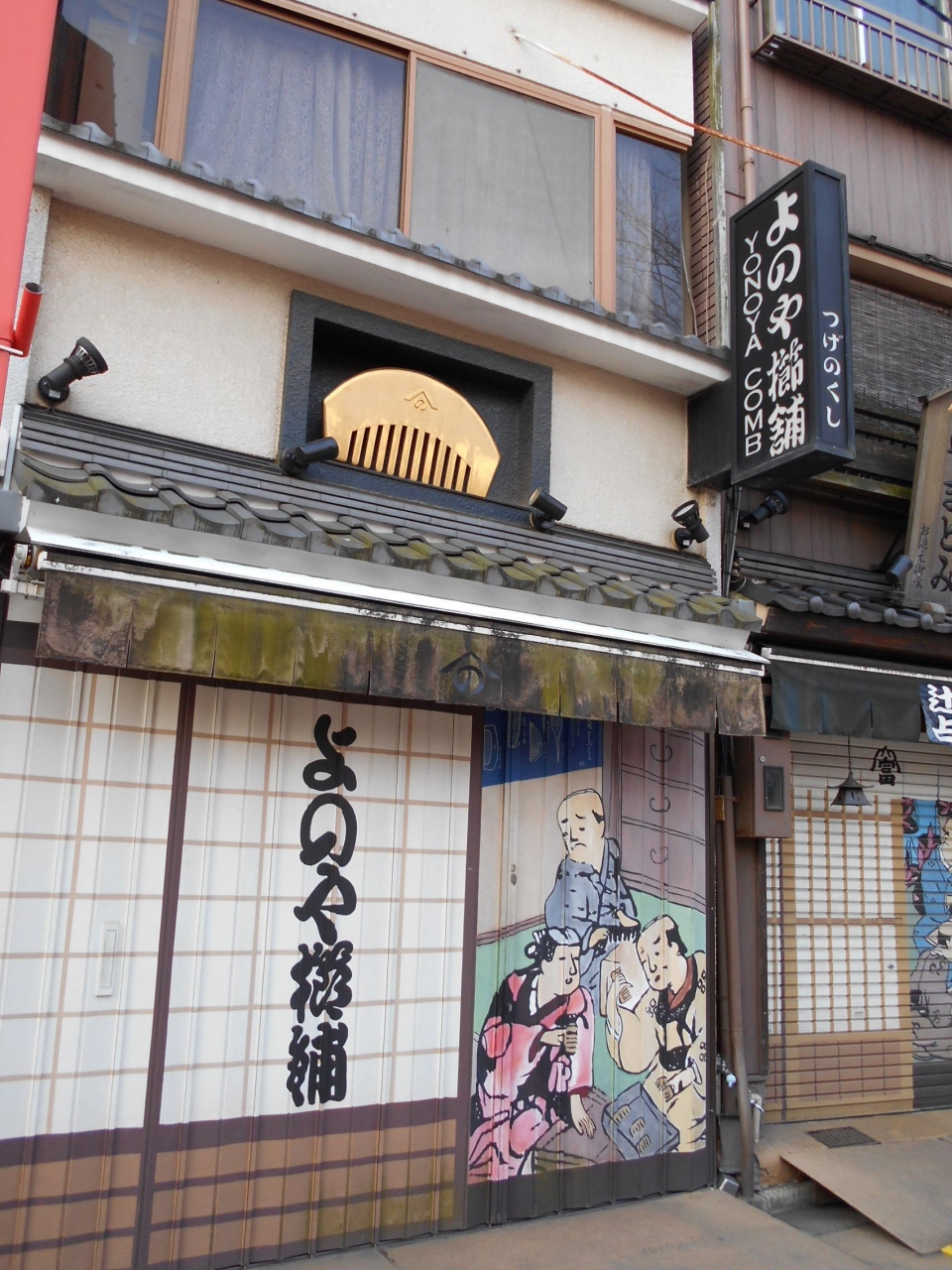 「よのや櫛舗」は、伝法院通り沿いにある「つげ櫛」の専門店です。