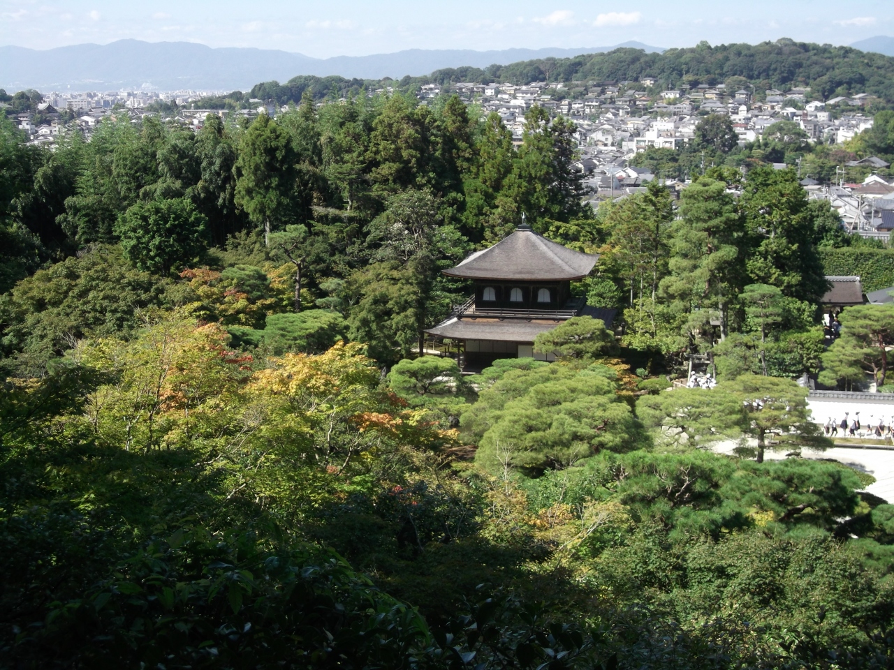 金閣のような派手さはないけれど、少しさびれた感じがむしろ落ち着いた雰囲気をかもしだしていて、こちらの方が良いように思いました。少し高いところまで登ることができ、そこからは銀閣と庭園全体を眺めることができました。