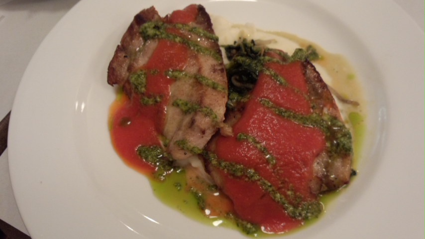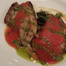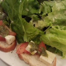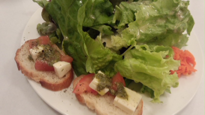 前菜はトマトとモッツァレラのカナッペにしました。カナッペよりもサラダのボリュームの方が多いです。メインもボリュームたっぷりでコスパは良い方だと思います。