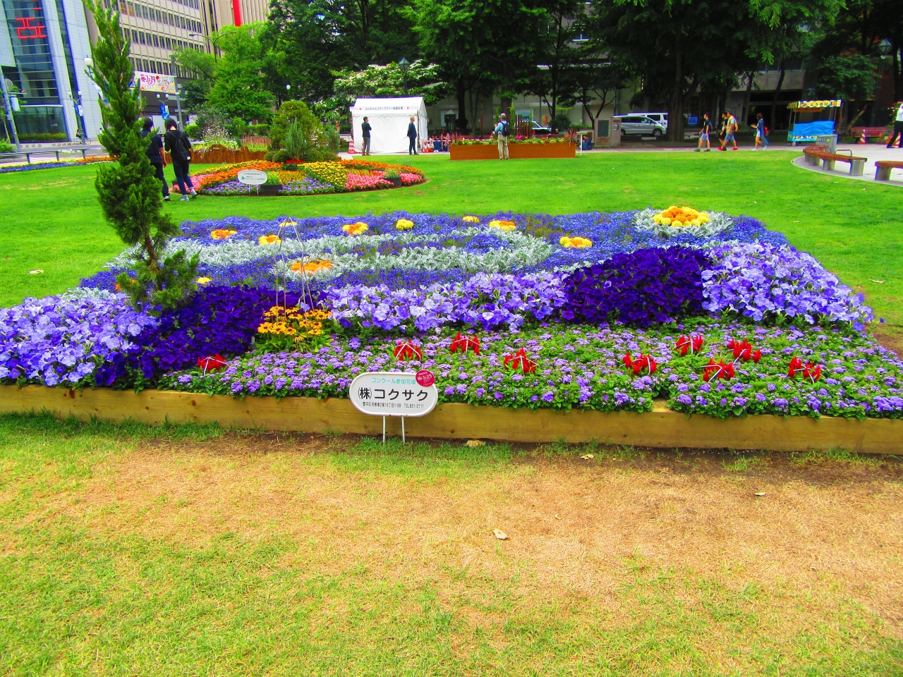 行くたびに何らかの催し物をやっていますが、今回は「花フェスタ」の最終日にぶつかり、高校生の作ったガーデニングなどが展示されており華やかでした。市民の憩いの場にもなっているようで、まだ朝9時前でしたが、日曜日だった事もあり、お弁当を広げて楽しんでいる家族連れも見かけました。