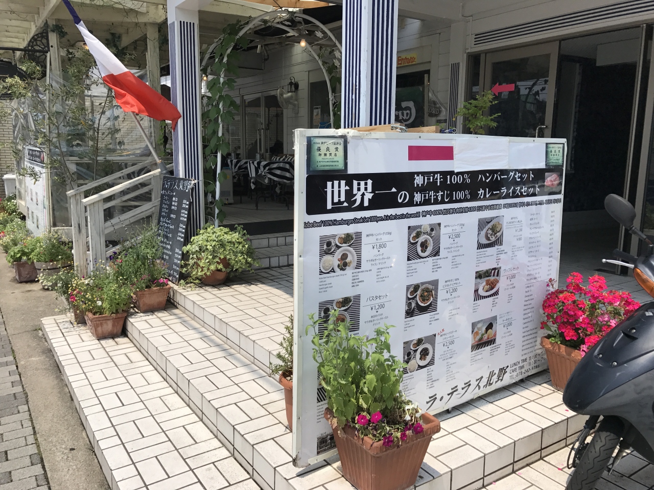 北野通り沿いにあるレストランです。ランチ時に利用して、神戸牛のハンバーグセットを注文しました。150グラムでしたが、大食漢の私には少し物足りないかな。でもジューシーでおいしかったです。300グラムのコースもあるので、次はそちらにしたいと思います。
