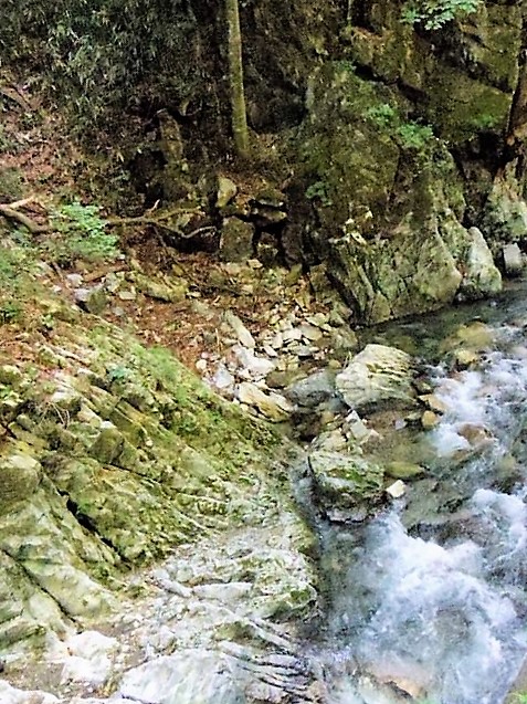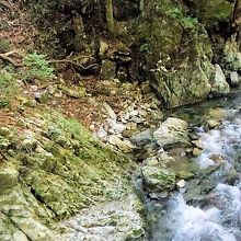 龍泉洞のわきから、遊歩道に入れます。そこに沿ってずっと、川岸を歩いて行けます。