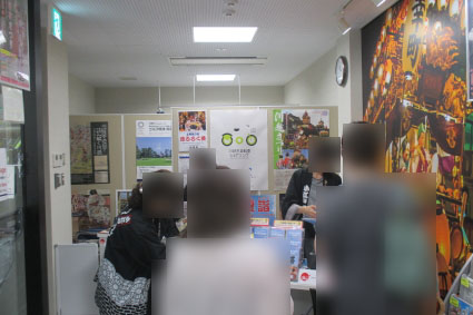 川越駅観光案内所は、東武川越駅の改札口横にあります。奥行きがないのでとても狭く感じます。その狭い中に、ソファ風の椅子が置かれていたり、時の鐘&蔵造りのミニチュア照明(これが良く出来ているのです)が置かれていたり、COEDOビールや復活の清酒鏡山も展示されています。さらに、接客カウンターも狭いので、カウンターから出ても案内をしています。係の人も大変だ!