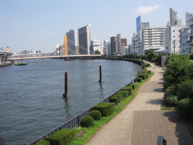 梅雨の晴れ間で蒸し暑い日だったので日陰が少ない隅田川テラスは日中の散策には不向きな感じでした。やはり気候の良いときに散策する方が気持ちが良いと感じました。