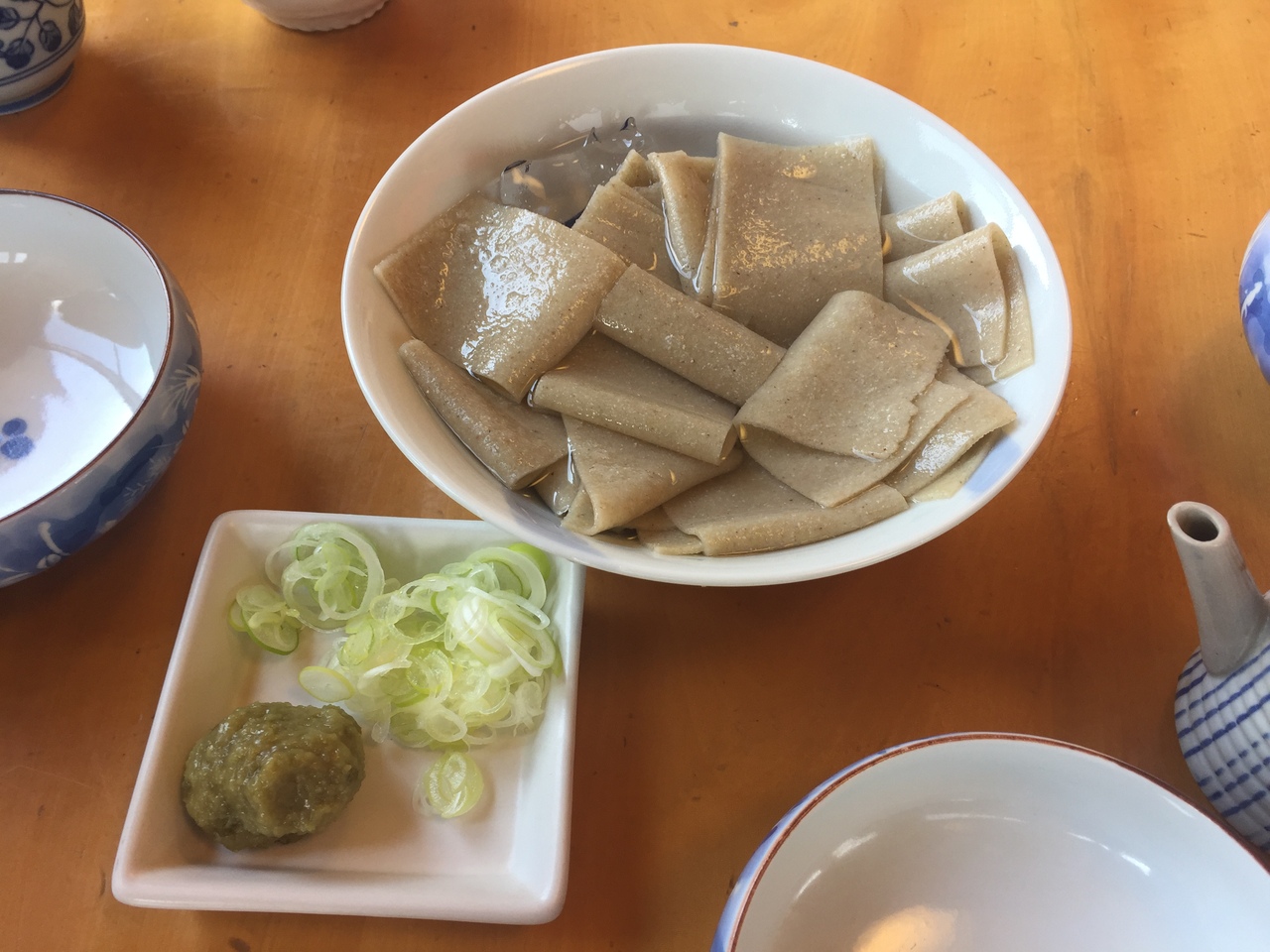 突き出し?で出た蕎麦煎餅も美味しく土産に買って帰った。