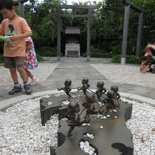 子供たちが乗車する「ミニSL」で盛り上がる横にあるのが、小さな小さな鉄道神社です。