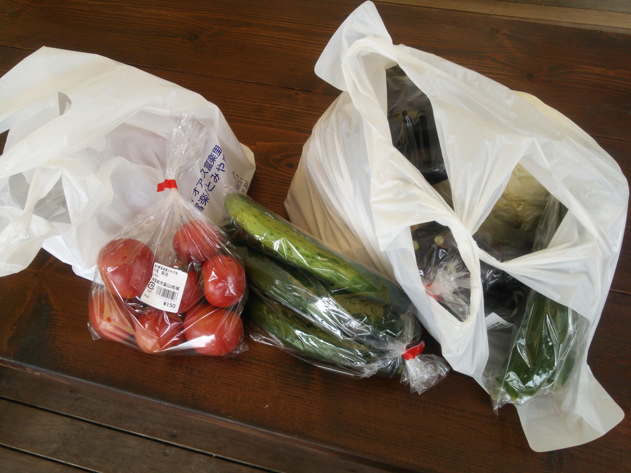 トマトが3つで150円位から、キュウリや茄子も大量に入っていて、100円ちょっとで買えちゃいます♪。