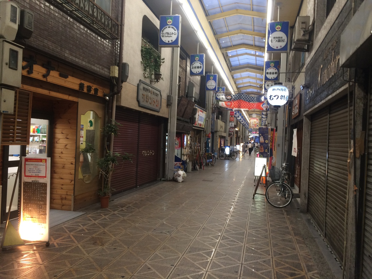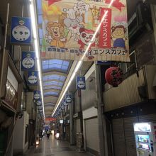アーケードになっていて長い商店街でした。軽く100メートル以上はありそうな長さでした。食べ物屋等店がづらりと並んでいましたがシャッター閉まっている店も結構ありました。カラオケ兼飲み屋を兼ねた店がかなり多かったです。途中枝道もたくさんありました。