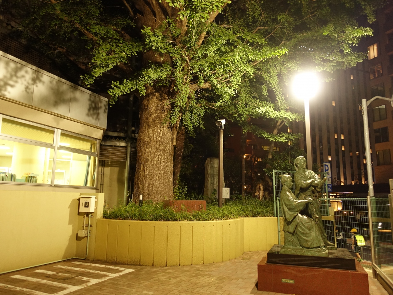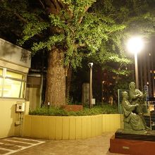 氷川坂方面から近づくと、大きなイチョウの木があり、その前に銅像があるのがよくわかります。この光景はなかなか素晴らしく、ベストな眺めはこちら側だと思います。
