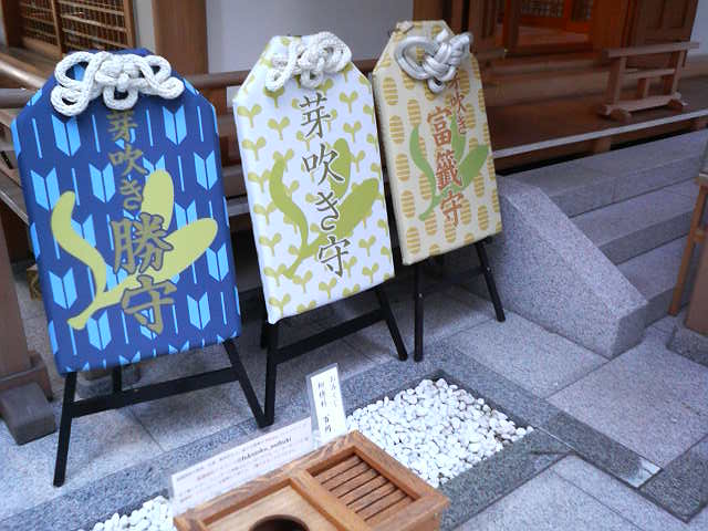拝殿の横に扱っているお守りのレプリカが並んでいたのですが、「芽吹き富籤守」(江戸時代に富くじの発行を許された神社のため。宝くじのご利益?)や「芽吹き勝守」(勝負事のご利益)などユニークなお守りがあり、その手のご利益がほしい人に買うのにちょうど良かったです。
