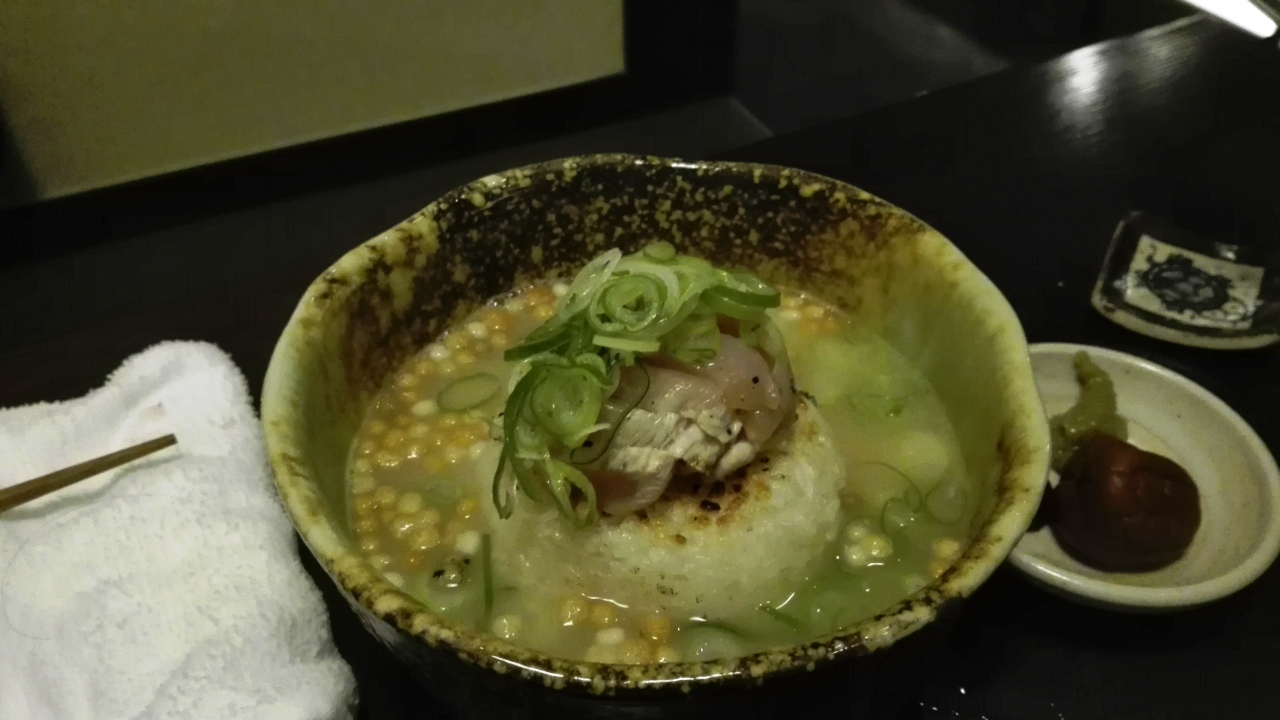 そして、〆に最適なのが、焼きおにぎりがゴロっと入った「鶏肉の茶漬け」