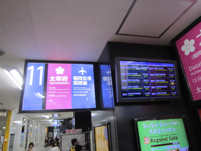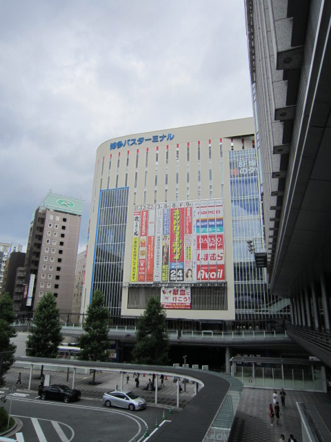 新幹線を降りて、博多駅前に出ると、駅を背にして右側すぐにバスターミナルのビルが建っているため、わかりやすくて便利です。