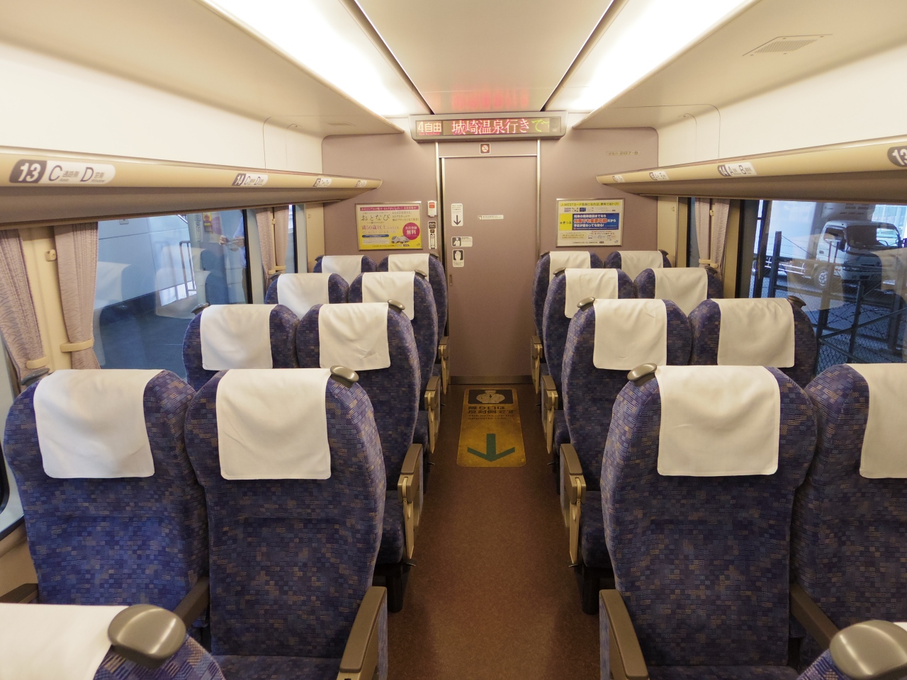 3時間近くかかりましたが、乗り心地はわるくなく、車窓を眺めたり、うとうとしたりしているうちに城崎温泉駅に到着、快適な移動になりました。