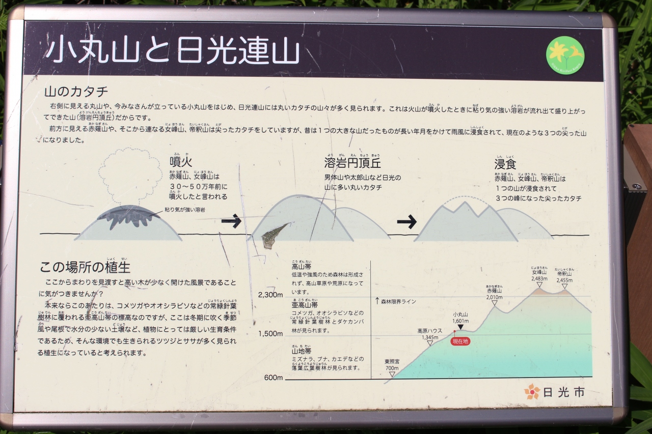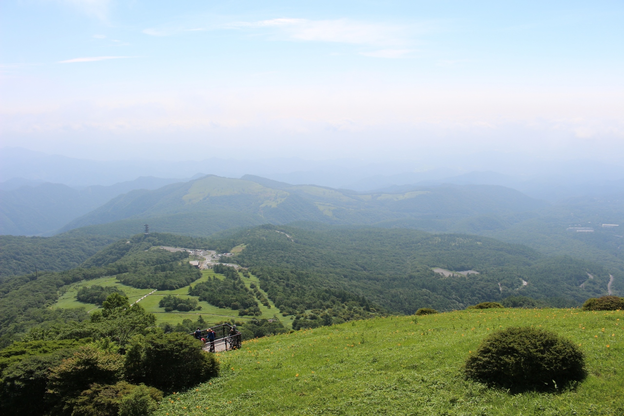 霧降高原にある1445段の階段の頂上にあるのが、小丸山展望台です。霧降高原を上から一望することができ、反対側には赤薙山のきれいな稜線を見ることができます。