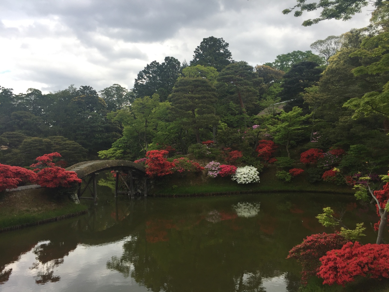 真っ赤な霧島躑躅も本当に美しくさすが日本一の庭園。