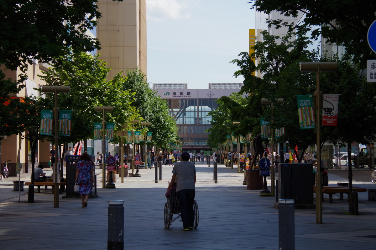 旭川の駅から真っ直ぐ8条通に伸びる約1kmに渡る通りですが、年中歩行者天国になっています。両側には飲食店などが並んでいるのですが、日曜日ということで路上コンサートなども開催されていましたが、人通りはそれほど多くありませんでした。
