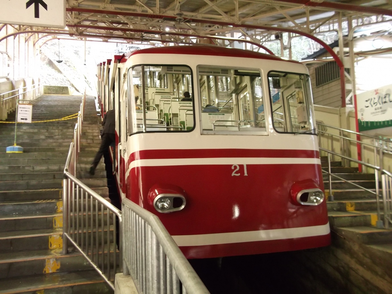 高野山へ向かうのに、南海電車高野線の終点極楽橋で降りてケーブルに乗り換えました。駅やケーブルカーの形を見て、これから先はかなりの急こう配が続くのだろうと想像はできましたが、普段とちょっと違う乗り物に乗る時には気持ちが高ぶりますね。乗車時間は短かったですが、景色を眺めているうちに高野山にたどり着きました。