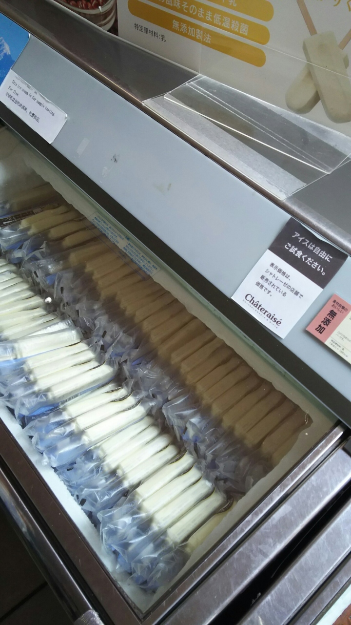 日曜昼の1時すぎに車で向かいましたがすでに入り口前の道路には車の列が。1時間くらいで駐車場へ。ここには何回かいっているので、工場見学はほぼ素通りで、アイス試食コーナーへ苦笑。今回は、コーヒーのカップアイス、ジャージー牛乳(これが一番うまい)、ソーダ、オレンジ、練乳あずき、あずきもなかがありました。以前来たときは、メロンアイス玉とかもあったのでちょいと残念でしたが十分満足でした。ありがとうございました。