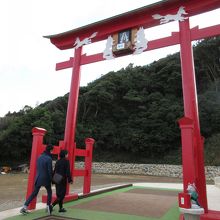 また、この神社の賽銭箱は、高さ3~4mの鳥居の上に設置されており、通称「日本一入れにくい賽銭箱」