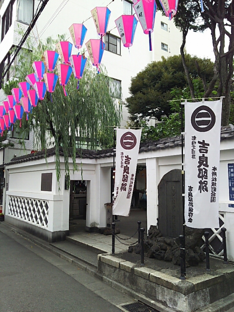 途中で、観光案内板で確認しながら行くと迷わないと思います。忠臣蔵で有名な吉良邸跡です。当事の86分の1のサイズだそうです。吉良上野介座像と松坂稲荷があります。