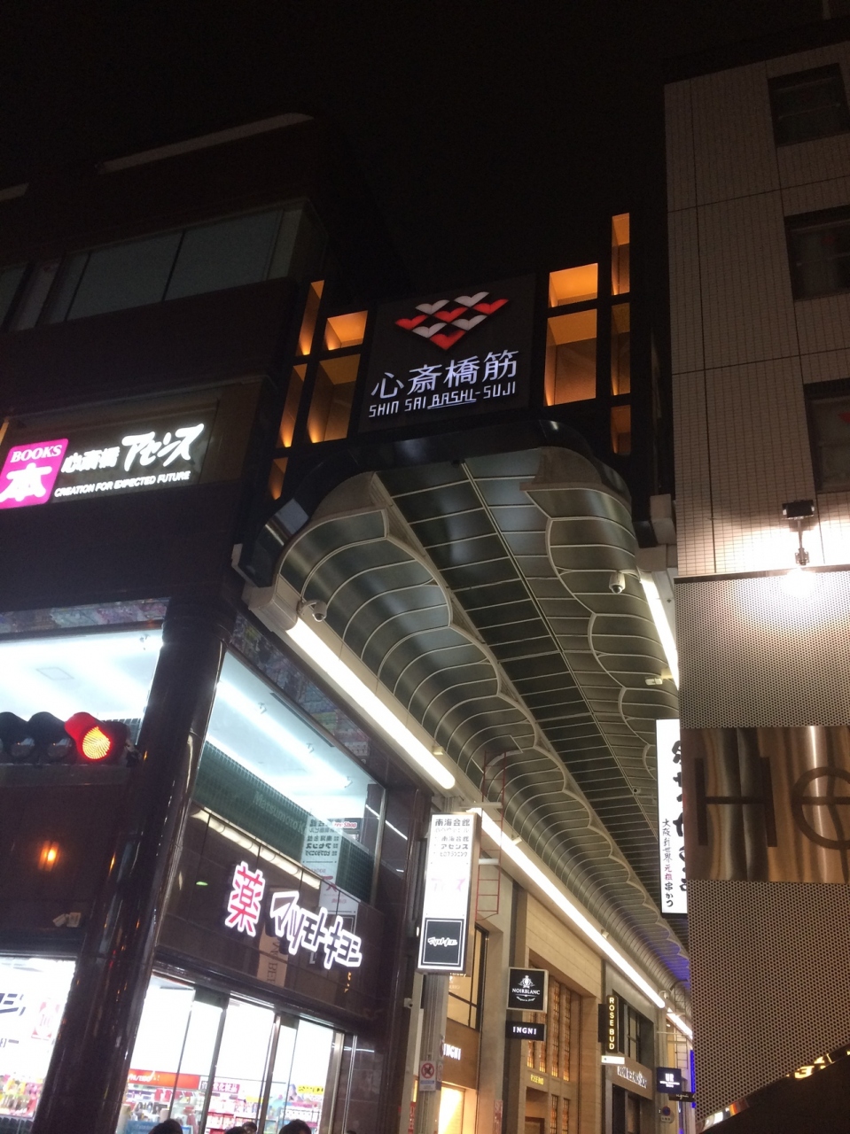 アーケードになっていて3階建てぐらいのビルが並んでいて人通りが多かったです。改装したてなのか綺麗で新しそうな商店街でした。入口の心斎橋筋のネオンが電光掲示だったのが新鮮でした。夜訪問したにも関わらずかなり明るい通りでした。