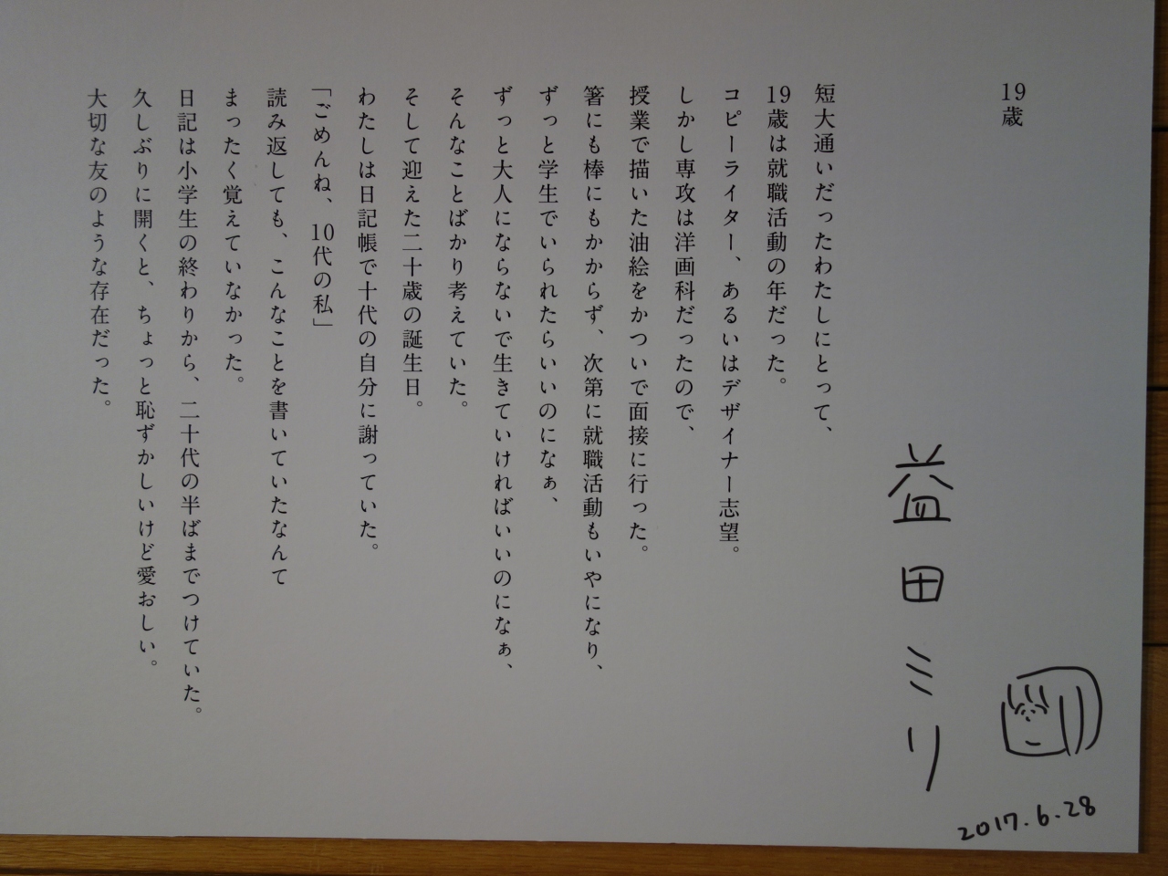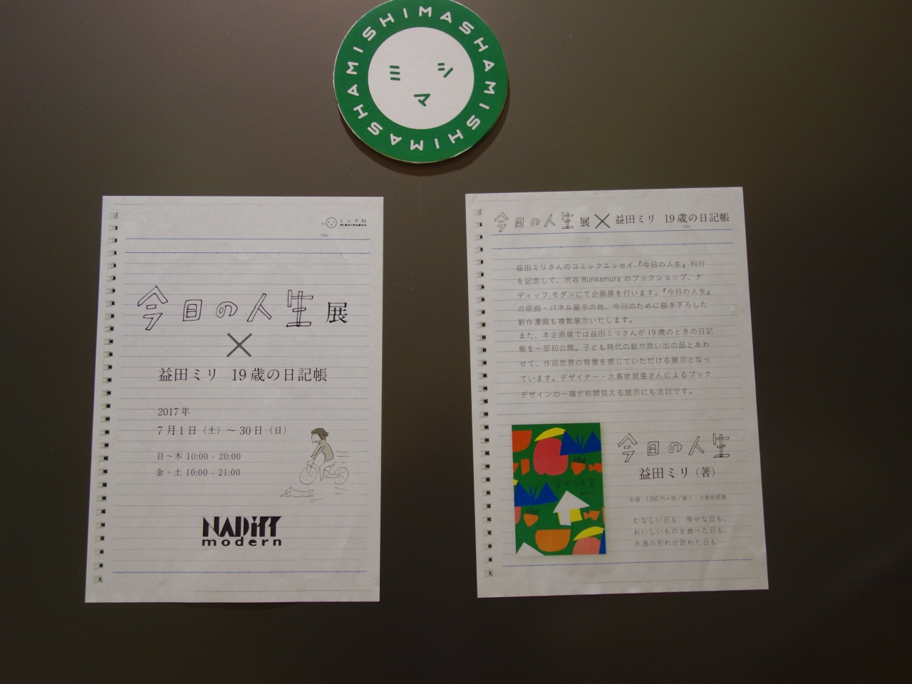 Bunkamura の本屋さんブックショップ ナディッフモダンで益田ミリの「今日の人生展×益田ミリ19歳の日記帳」展をやっています。7月31日までです。益田ミリ,現代人の真情を平易な文章であらわすステキな人です。その一句一句がこころにしみます。
