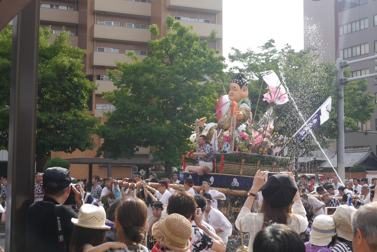 山笠は真直ぐ交差点を抜けるのではなく国体道路から大博通りに左折して、寺の前まで50m程移動し、そこでUターンして寺の前に来ることが今回初めてわかりました。その後、50m程戻って国体道路に左折して行きました。