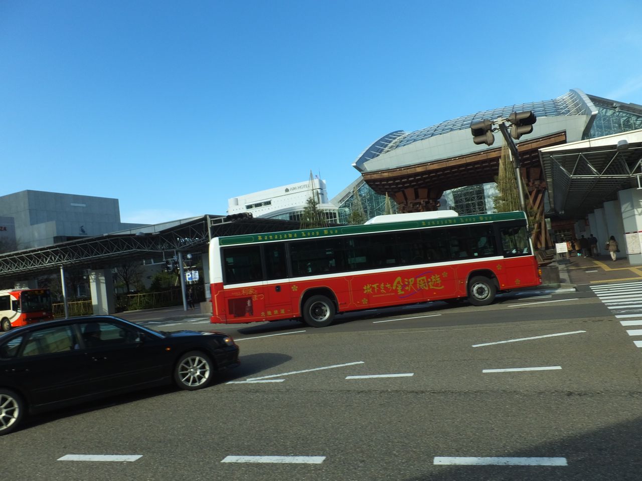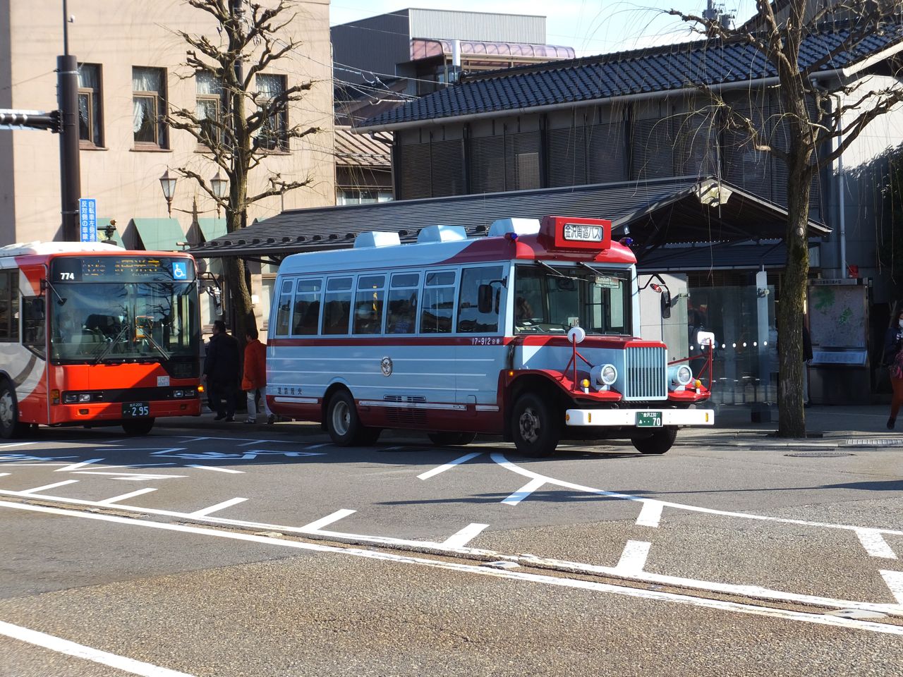 金沢観光はほぼ市街地に限定され、しかも歩くにはちょっと市街が大きく広く、このようなバスにぴったり。