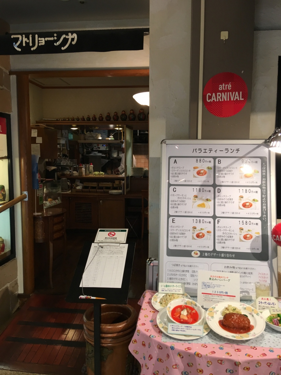 一般的なファミリーレストラン言う印象でした。恵比寿のアトレの中にあるレストランで、マトリョーシカと言うのでロシア料理かと思いましたが、ディスプレイには一般的なパスタなどの洋食が並んでいました。味もそこそこ一般的でした。女性の入店が多かったです。