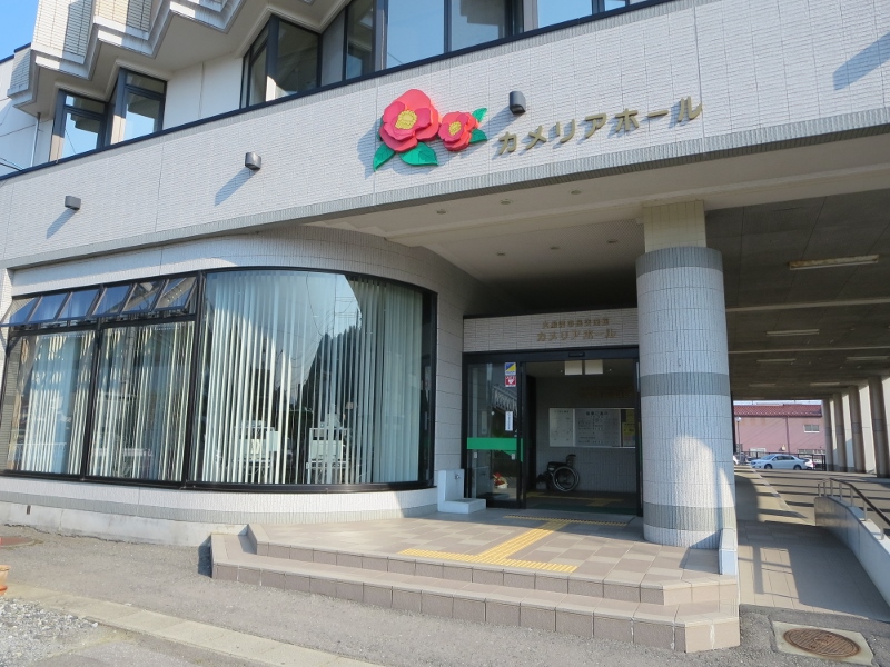 三陸鉄道南リアス線を降りて、盛駅の脇にありました。建物についている椿のマークが目立ちます。中に入ると、公民館でした。市民の為に部屋を貸し出すこともしているようです。市のお知らせなどパンフレットがたくさん置いてありました。暑かったので、少し中で一休みしました。