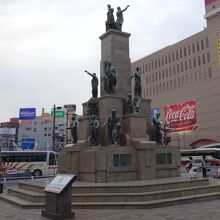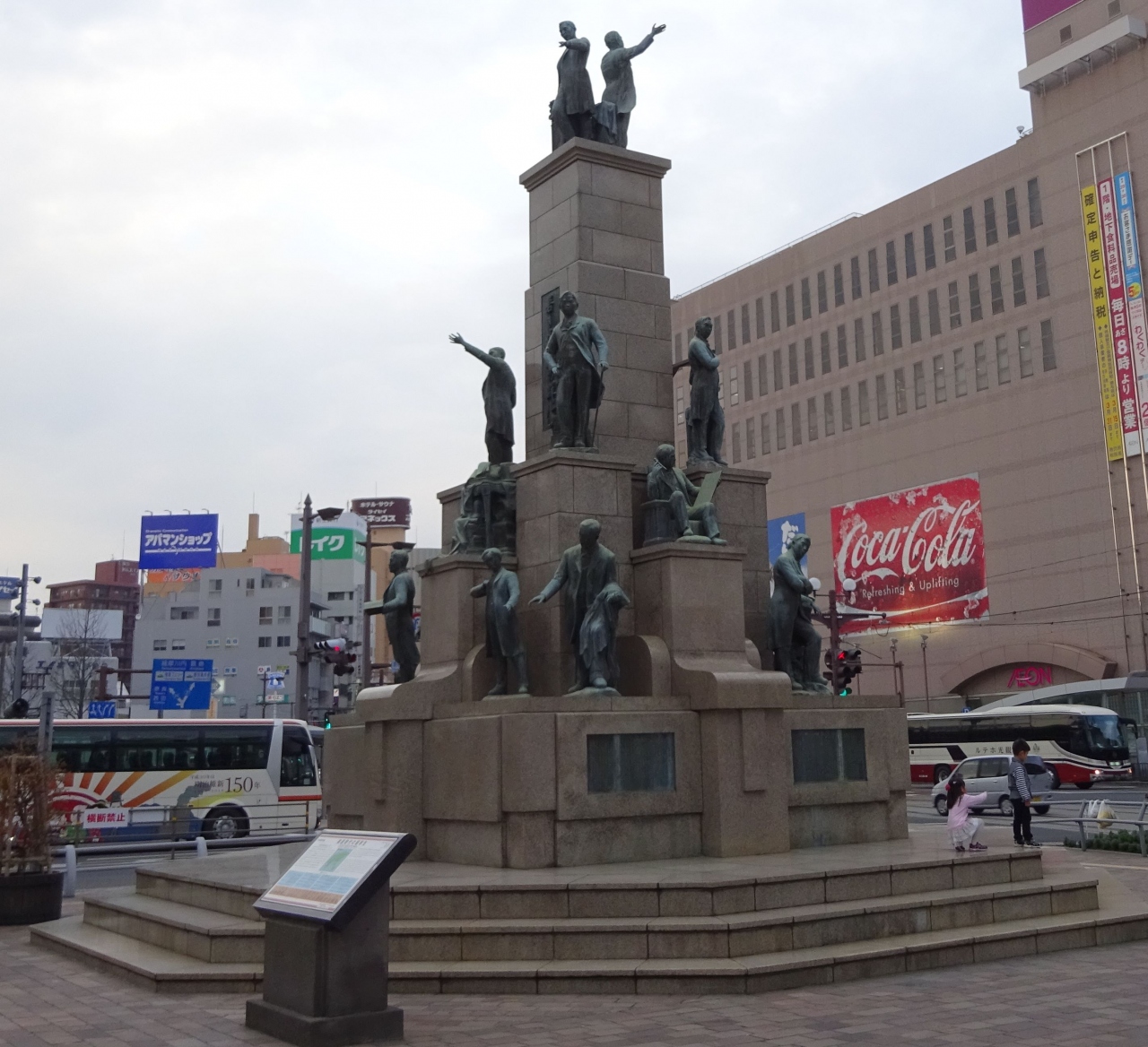 江戸時代後期に、薩摩藩から英国に留学した藩士17名の銅像だそうです。