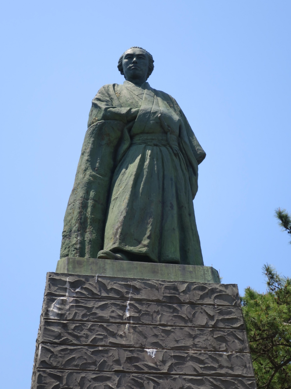 高知の景勝地 桂浜を見下ろす小山にたつ坂本龍馬像です。龍馬像として建てられた像では最大で、一番有名な像だと思います。懐に手をいれ、靴を履いた姿は龍馬の写真と似ていますが、ちょっと違う感じもします。