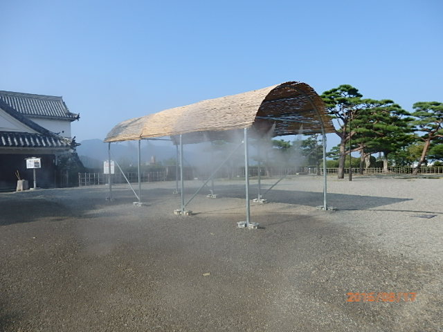 上の方にはスプリンクラーで霧のような水がでていて、少し涼めました。