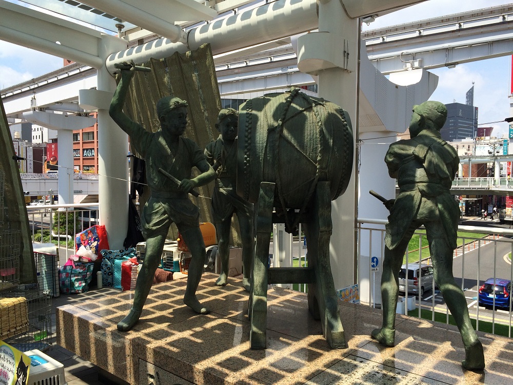 小倉の夏のお祭り、祇園太鼓の像です。
