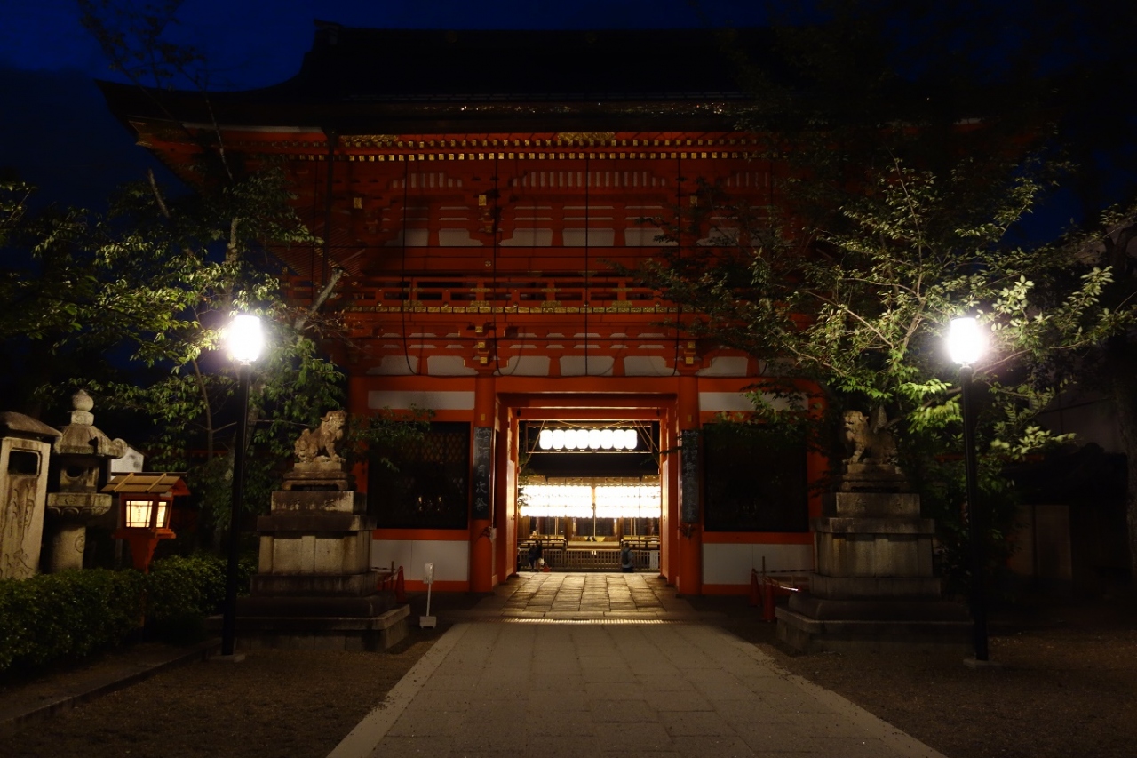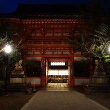 八坂神社へは清水寺へ立ち寄って二年坂・三年坂そして石塀小路を通ってアクセスしました。ちょうど南楼門より八坂神社の敷地へ入って行きました。朱塗りの立派な門で、すでに暗くなっていたため門の向こうに沢山の提灯が見えて幻想的でした。