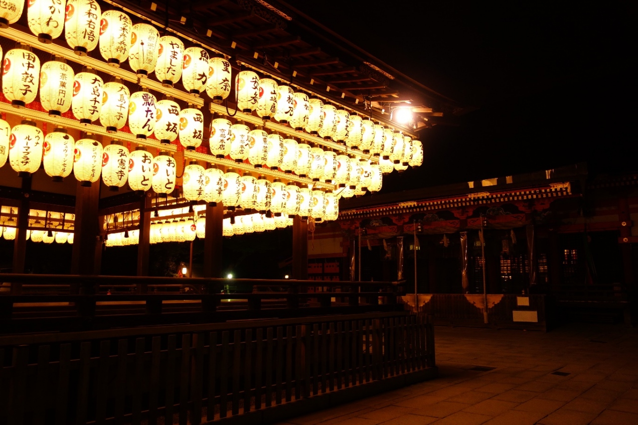訪れたのは夜だったためか、八坂神社は人が多くなくて比較的落ち着いてお参りをすることが出来ました。朱塗りの門や建物、提灯で囲まれた舞殿など幻想的な雰囲気で印象深かったです。地元の人たちや舞妓さんの姿も見えました。