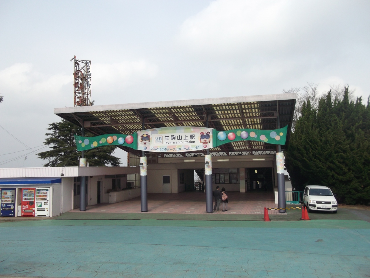 生駒山ケーブルで山頂まで上がること15分。そこは広大な遊園地になっていました。遊園地は休園中で人影はまばらでしたが、高台なので景色はすばらしく、大パノラマを堪能できました。ケーブルカーはかわいらしいですね。それ自体が遊園地のアトラクションのようでした。