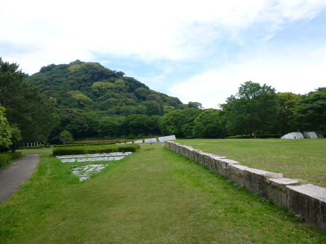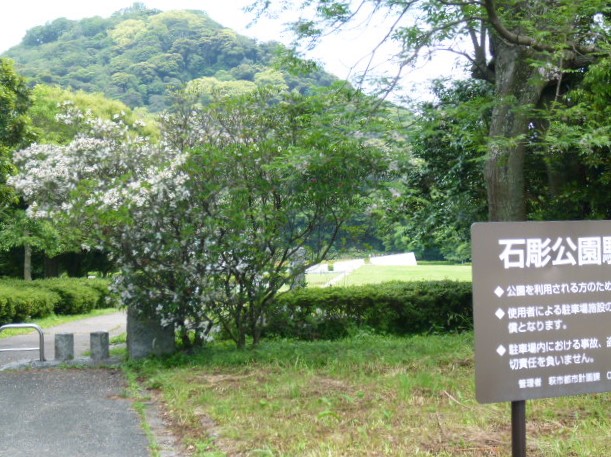 石彫公園は指月山の麓にあり萩城跡の西側に位置し園内にはモニュメントや、遊具、ベンチなどがあり楽しく散策路としても利用できます。
