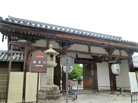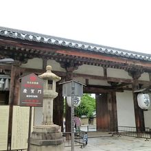 宿泊ホテルから7分で;東寺道で[慶賀門]で来ました。重要文化財の門ですのでチョッと驚きました(大通りに面しているので重要文化財ならカバー材が取り付けられる?)。`慶賀`と名前も…きっと皇族がたが通った由緒あるご門ったのでは,, さて、40年振りに東寺を(^^)