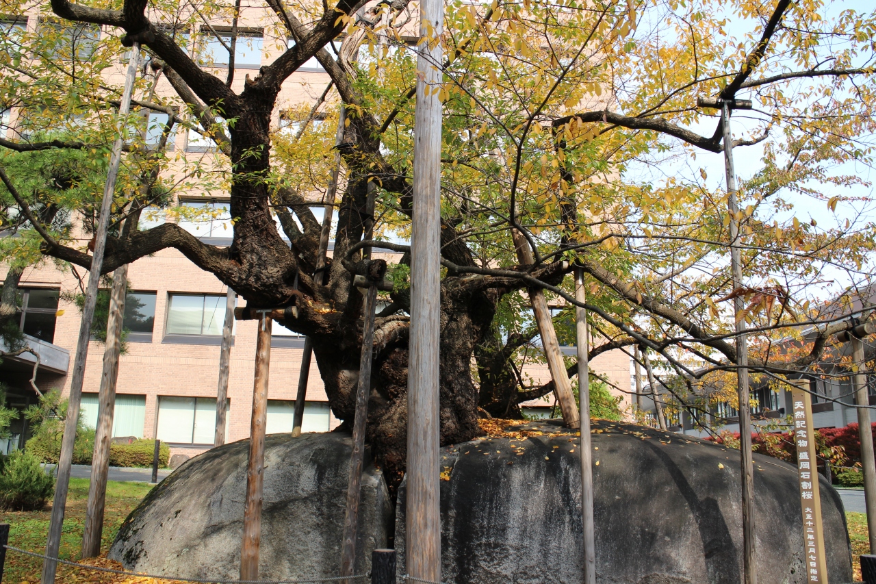 盛岡地方裁判所構内に所在する巨大な花崗岩の割れ目から育った直径約1.35m、樹齢360年を越える桜