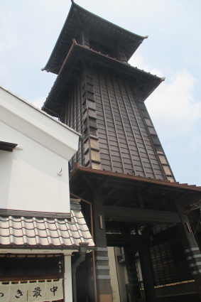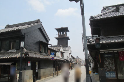 時の鐘は、蔵造りの一番街の「時の鐘」入口の信号から右に見えます。この鐘楼の高さは約16mあるのですが、建物の陰になってしまって、町中のどこからでも見える訳ではありません。正確な場所を知らずにやってきた観光客は、すぐ近くまで来て見つけると、あったあった!と喜んでいる姿も見掛けられます。江戸時代にはどこからでも見えたでしょうし、火の見櫓の役目とともに、道しるべにもなったのでしょう。近づいてみると、平成の大修理により4本の柱は下の部分は新しく差し替えられ、その上は補強もされています。でも、木造であることには変わりなく、良く持ちこたえているなと感じます。現在の鐘は約380年前の初代の時の鐘から数えると13代目にあたるそうです。そして、日に4回、6時、12時、15時、18時に鐘が撞かれていますが、機械による自動撞きです。従って、鐘撞棒が撞き出す直前の様に後ろに引かれた状態で止まっています。お昼の時間帯には時の鐘からそれほど離れていなかったはずですが、意識をしていなかったので、鐘の音を聞いた覚えがありません。それだけ、現代は雑音に溢れていることなのでしょう。